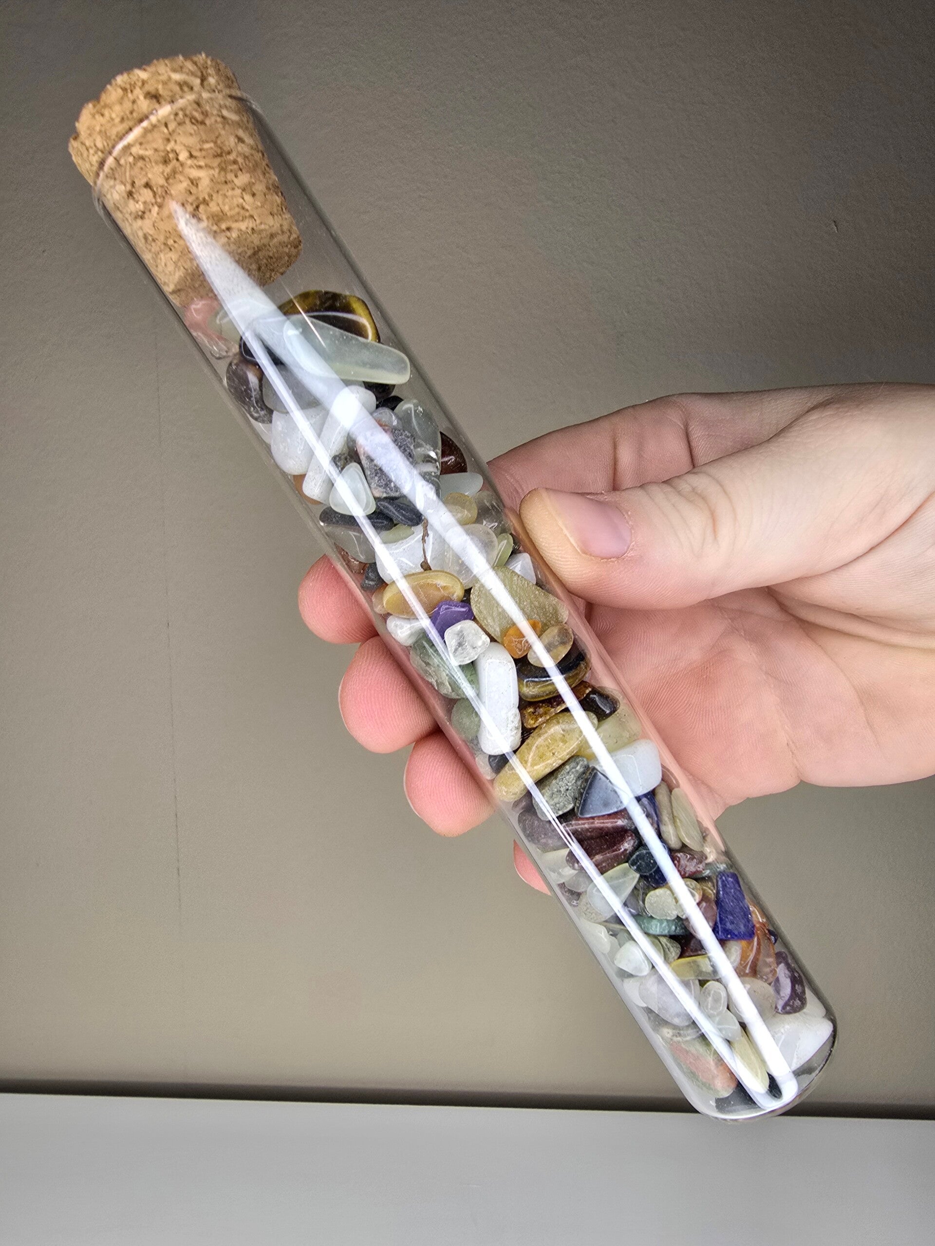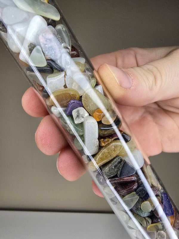 Gevuld met trommelstenen in glazen koker