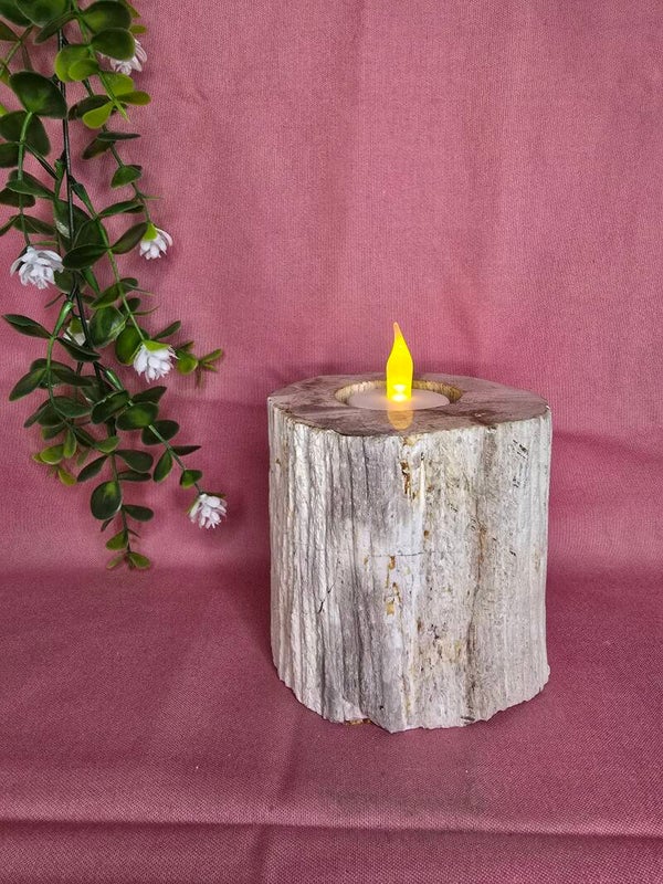 Versteend hout kaarsen houder
